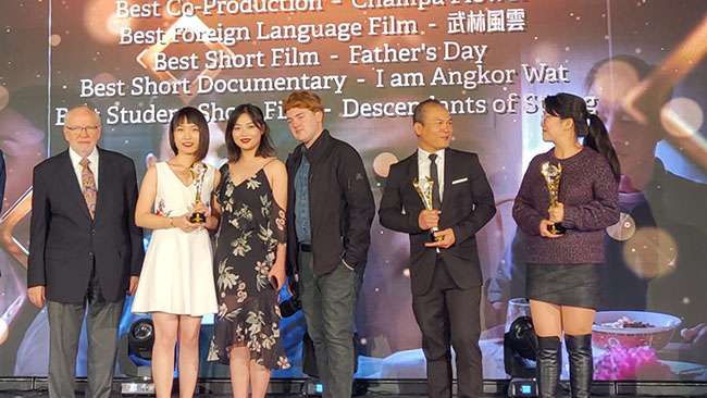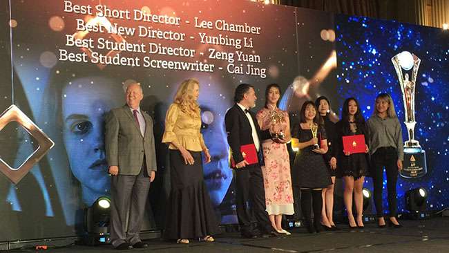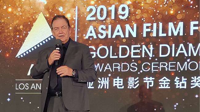 奥斯卡特效奖得主理查德·安德森(Richard Anderson)、AFF亚洲电影节共同主席利思·伊顿(Leith Eaton)给金钻奖获得者颁奖。