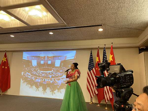 招待会期间播放了澳门视频并举办了澳门发展成就的主题图片展。著名歌唱家杨紫萍演唱了《七子之歌—澳门》,收到嘉宾好评。