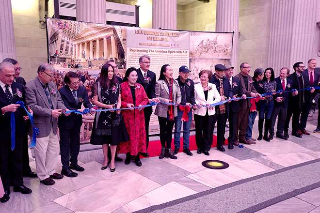 美籍华裔艺术家艾伦赵琼纽约联邦大厅艺术个展剪彩仪式。