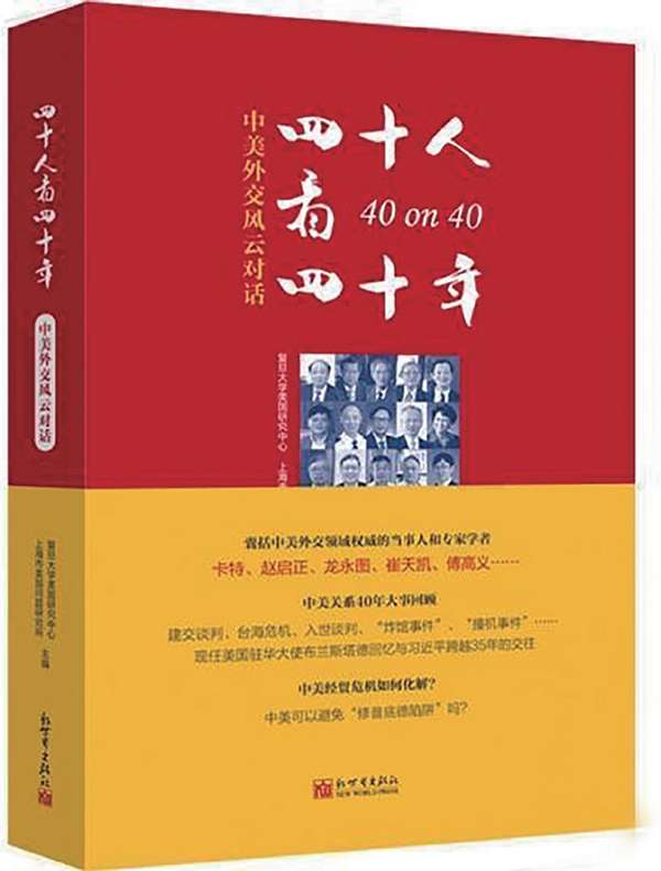 《四十人看四十年:中美外交风云对话》一书以纪念中美建交40周年系列访谈为主要内容,囊括中美外交领域权威的当事人和专家学者各20人的访谈对话,包括中方的赵启正、陶文钊、周文重、何伟文等,美方的卡特、傅高义、芮效俭、约瑟夫·奈等,他们都是中美风云变幻的亲历者、观察家以及中美友好合作的推动方、受益人。在该书中,他们围绕两国外交、建交谈判、台海危机、入世谈判、炸馆事件、撞机事件、贸易战等热点议题畅谈了看法,也表达了希望中美友好合作的共同心声。