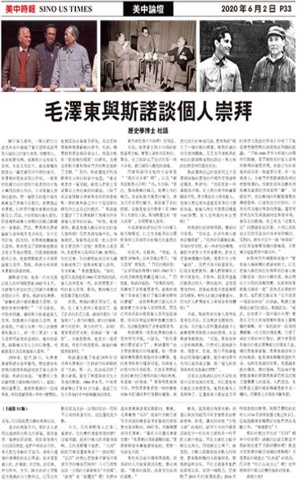 关于个人崇拜,一般人们往往认为毛在中国搞了个人崇拜或认可别人搞自己的个人崇拜,但实际上,毛在相当时期,在党内并没有个人崇拜,毛在文革前夕,甚至无权到想发出一篇文章而不可得的地步。毛泽东的崇高威望之形成,一是在打败蒋介石的过程中他表现的大智大勇而自然生成的,并不是个人崇拜的产物;另一个原因则是中国共产党为了与蒋介石对抗,有意推出毛泽东,以形成中国共产党的崇高号召力,而这,并非简单的个人崇拜,而是国共两党大决战的取胜之关键的一个策略,而这,更是与毛泽东搞个人崇拜风牛马不相及。至于文革前后一段时间,毛泽东鼓励搞个人崇拜,那也是为了发动无产阶级文化大革命的需要,而当运动发动起来之后,他就明显地表示不应再搞个人崇拜。对此,斯诺也有有关毛泽东的谈话记录。