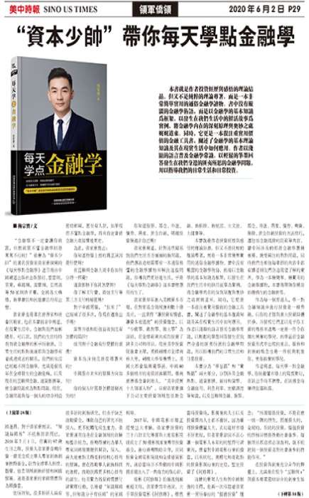 “金融学不一定会让你致富,但想致富不懂金融学则是万万不行的!”被誉为“资本少帅”的著名投资家张家豪撰写的《每天学点金融学》近日将由中国铁道出版社出版发行。当当网,京东,卓越网,淘宝网,亚马逊等50家网络平台,全国各大机场,新华书店和民营书店均有出售。