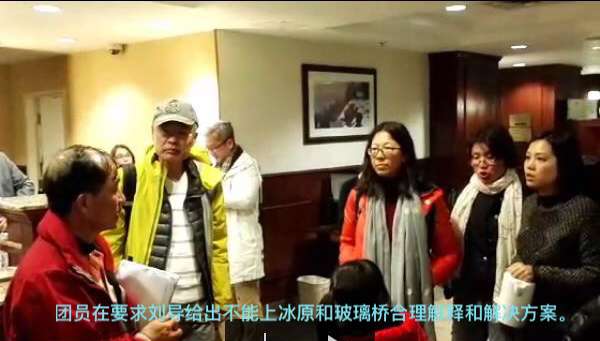 游客质问导游明明知道我们上不了冰原,为何还煞有介事地让我们过来,忽悠我们?左一,穿红衣服者即导游刘嘉育