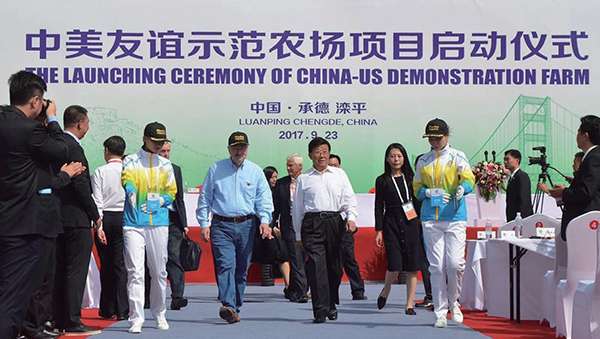 2017 年秋天参观了位于河北省滦平县的金伯利农场,该农场是美中农业合作示范项目。布兰斯塔德大使在任期间,一直致力于推广美国的农产品。