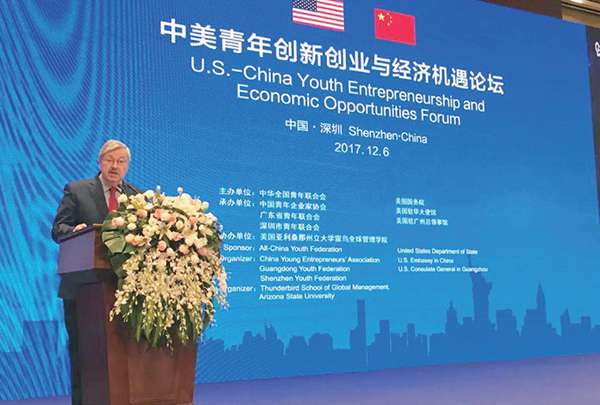 布兰斯塔德大使在任期间,数次前往广州与深圳。在那里他参加了广州《财富》全球论坛, 中美青年创新创业与经济机遇论坛,在会上发表讲话, 接受CNBC 与彭博社等媒体的采访,并与工商界领袖见面。