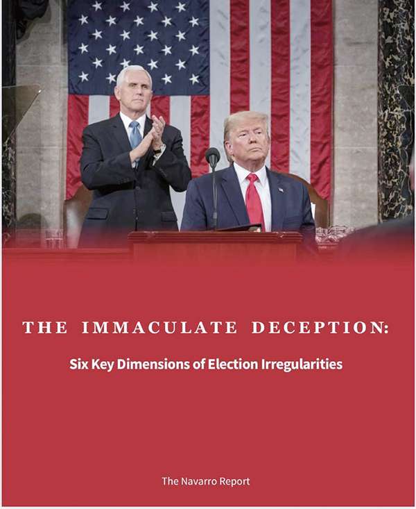 美国白宫贸易与产业顾问纳瓦罗(Peter Navarro)周四(2020年12月17日)发表题为《完美骗局:选举违规六个关键层面》(The :Six Key Dimensions of Election Irregularities)的报告,揭示美国2020年总统大选中六个摇摆州的异常表现。