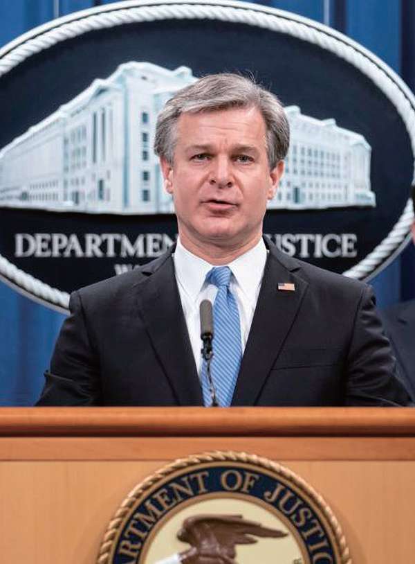美国联邦调查局局长克里斯托弗·雷(Christopher Wray) 在新闻发布会上表示,这些指控是美国司法当局多年调查的结果。