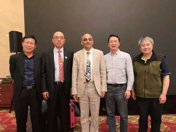 2018 年在北京颅颈交界区发育畸形学术交流会,宋涛教授(右二)与印度神经外科Goel 教授(中)三博脑科医院神经外科范涛教授(左二)美国神经外科张方迤教授(右一)海南省人民医院神经外科杨堃教授(左一)合影。