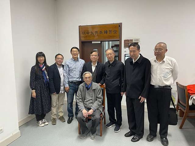 钱先生在林维副校长和周军兰馆长陪同下参观“读书室”。