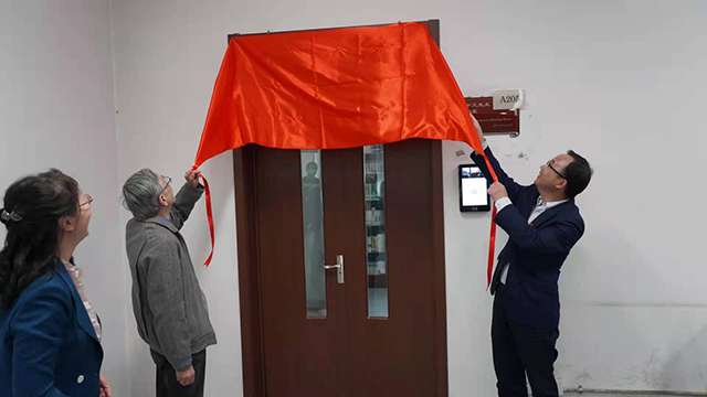 钱先生与林维副校长、周军兰馆长一起为“读书室”揭幕。