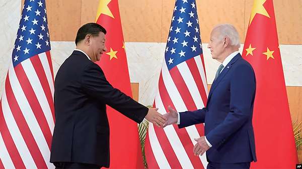 美国总统拜登与中国国家主席习近平在印尼20国峰会期间举行面对面会谈(2022年11月14日)图源于美国之音