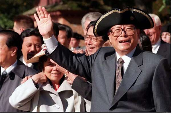 1997年10月28日,江泽民和夫人参观威廉斯堡前州长官邸时,威廉斯堡基金会会长威尔伯恩,向江泽民赠送了一顶黑色三角帽,这种三角帽在当年的美国独立斗争中是爱国主义的象征。江泽民微笑着向在场的欢迎人群挥帽致意,随即将帽子带在头上。见到这一情景,不少在场的美国人使劲挥动手中的中美小国旗。