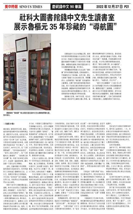 “钱中文先生读书室”于2021年4月23日世界读书日和社科大第四届读书节揭牌。读书室设置了三个展柜,分别陈列了钱中文先生早年阅读次数标记、研究中的标记和评注的图书实物。鲁枢元捐赠的钱老师手绘的导航图”,反映了钱老师对青年学者的关心,为读书室增加了新的内容。