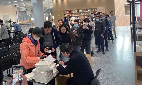最后,参加讲座的听众排队请祁志祥教授在新书上签名留念。