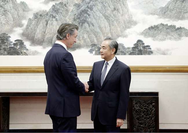 王毅表示,加州长期以来同中国保持友好合作关系。旧金山在中国家喻户晓,美国第一条唐人街就诞生于加州。习近平主席指出,中美关系的基础在民间,希望在人民,未来在青年。州长先生此次中国之行可谓是一次夯实基础、播撒希望、开辟未来的破冰之旅。时间和事实会证明,此访符合加州民众的愿望,符合美国人民的利益,符合国际社会的期待。祝愿此访取得圆满成功,推动中国同加州互利合作迈上新的台阶,增进中美两国人民的相互了解,并为改善和促进中美关系发挥重要建设性作用。