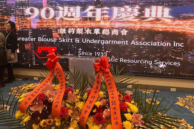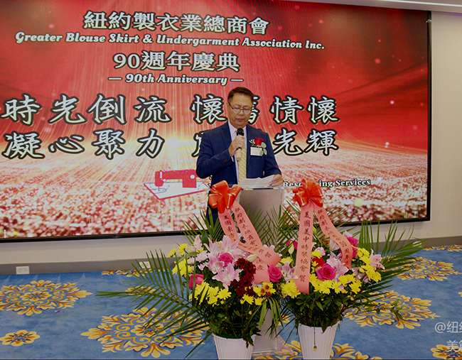10月26日,纽约制衣业总商会90周年庆典晚宴在纽约华埠喜运来大酒店举行,纽约侨政商界300余人到场祝贺,其中包括美国国会议员Grace Meng, 纽约州第十区州议员Dan Holdman,纽约州16区议员John C.Liu,纽约市议员Brian Kavanagn 纽约州议员 Ron Kim 纽约州议员 Grace Lee 纽约市长Eric Adams、曼哈顿区长Mark Levine、市议员Christopher Marte、市议员Sandra zing 等政府机构的代表. 还有数十个美东地区的华人华团领袖代表,和中国内地相关组织代表到场祝贺。(美国华人建筑公会、美国美中时装协会、美国酒店华裔协会、美国上海总商会、美国时尚与艺术研究院、纽约长老会医院、美国老子国际生命研究中心、中国老子道学文化研究会、美国东方文艺复兴联盟、纽约华策会、新澤西中华公所、中华保险、纽约Lafayettel148时装公司、中国新丝路时尚集团、世界时尚艺术联盟、广东省服装设计师协会、纽约“美国梦”啇业综合体、纽约大都会麦迪隆会展中心、上海国际时尚中心、温州市财富中心、中国万事利集团、浙江青柏实业、中国深圳时装设计师协会、中国𢇁绸博物馆、中国大麦本草博物馆、纽约FIT服装博物馆, 纽约亚裔历史与艺术交流中心(筹)、诺亚方舟(深圳)文化健康投资管理有限公司、美国卓越艺术联盟、世界华人艺术联盟、凤纪堂美容抗衰老中心、纽约皇后画院、美国林氏集团、美国雪鸟时尚机构、美国环球银行、法拉盛银行、华埠共同发展机构、美国亚裔选美大赛机构等)。为本次庆典活动增加了鲜明的时代特色。