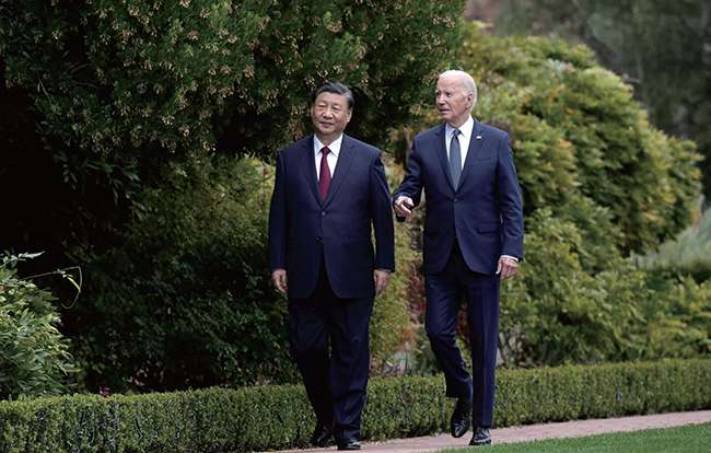 当地时间2023年11月15日,国家主席习近平在美国旧金山斐洛里庄园同美国总统拜登举行中美元首会晤。习近平指出,相互尊重、和平共处、合作共赢,这既是从50年中美关系历程中提炼出的经验,也是历史上大国冲突带来的启示,应该是中美共同努力的方向。这次旧金山会晤,中美应该有新的愿景,共同努力浇筑中美关系的五根支柱。