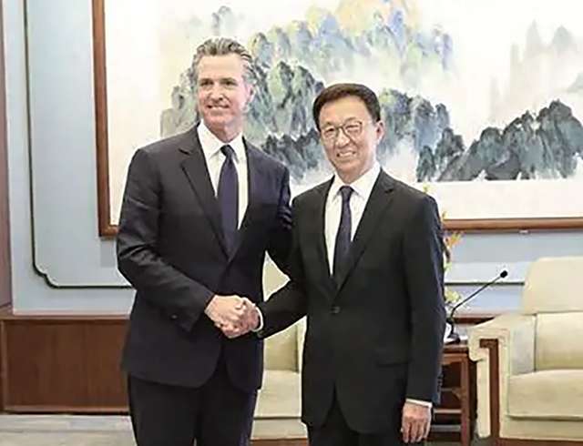2023 年10 月25 日,中国国家副主席韩正在北京会见加州州长纽森。