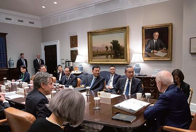2023 年10 月27 日,美国总统拜登在白宫会见到访的中共中央政治局委员、外交部长王毅。