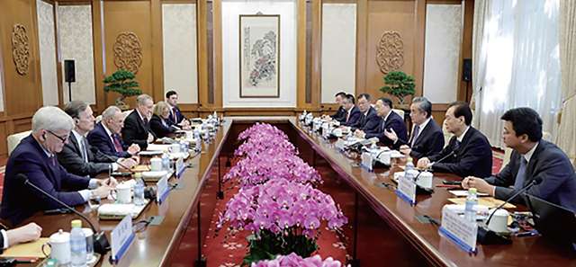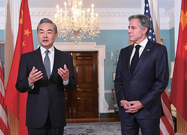 2023 年6 月19 日,中共中央政治局委员、中央外办主任王毅在北京会见美国国务卿布林肯。