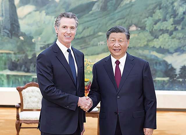 2023 年10 月25 日,中国国家主席习近平在北京人民大会堂会见加州州长纽森。
