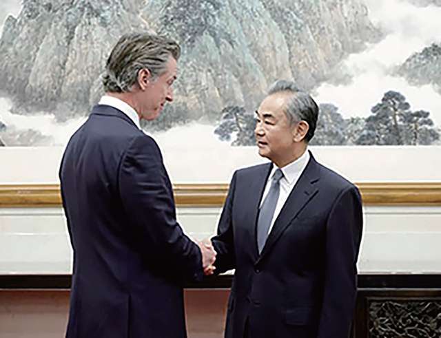 2023 年10 月25 日,中共中央政治局委员、中央外办主任、外交部长王毅在北京会见加州州长纽森。