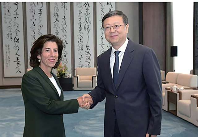 2023 年8 月29 日,美国商务部长雷蒙多会见何立峰副总理。