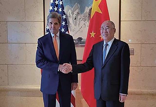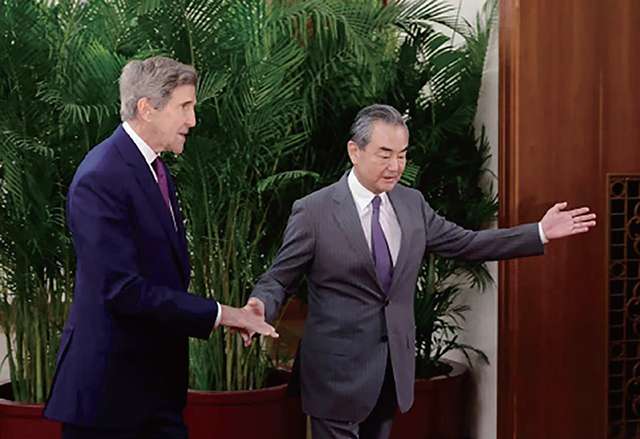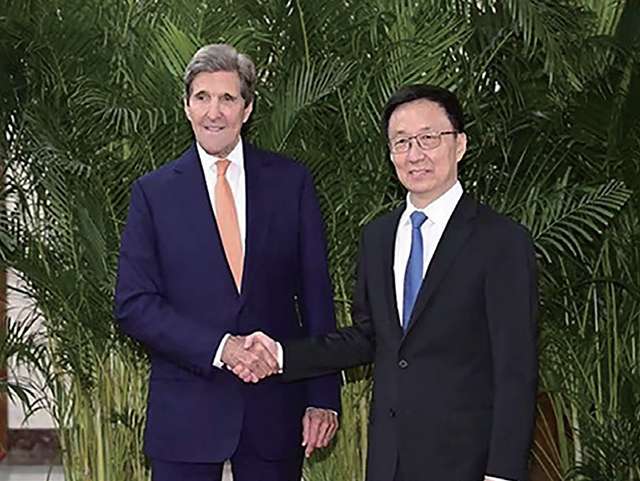 2023 年7 月17 日,中国气候变化事务特使解振华与美国总统气候问题特使约翰·克里举行会谈。