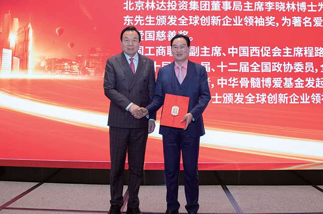2025年11月30日下午,“全球创新企业家联盟”成立庆典在北京隆重举行,著名爱国侨领、慈善家王玉印获颁“爱国慈善奖”。第十三届全国人大代表、第十届至十二届全国政协委员、全国脱贫攻坚先进个人李晓林博士为其颁奖,表彰他多年来在家乡建设、扶危助困、关心下一代、敬老爱老及精神文明建设等领域作出的杰出贡献,彰显其深耕公益数十年的责任担当。