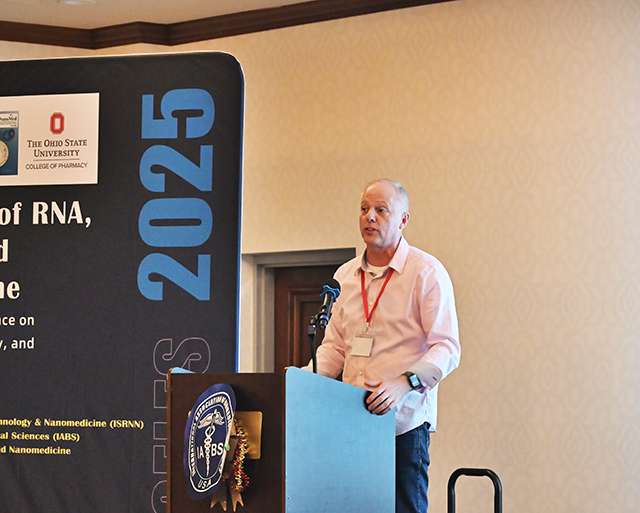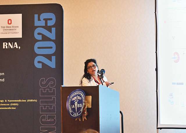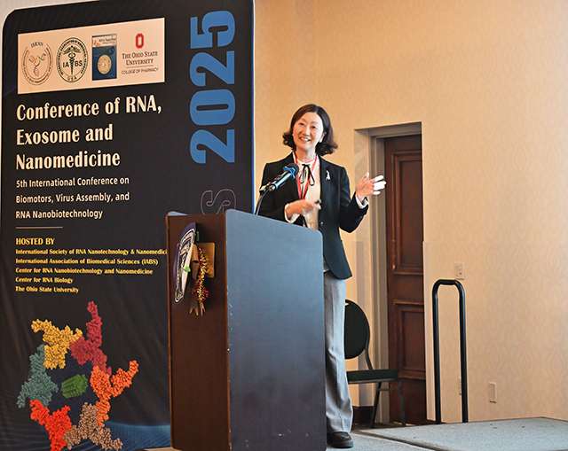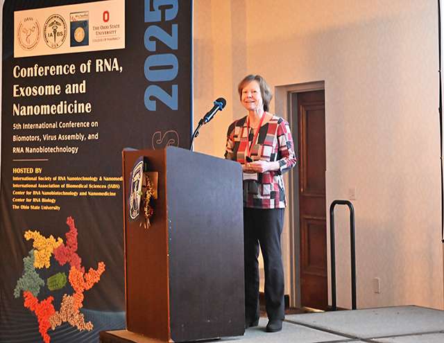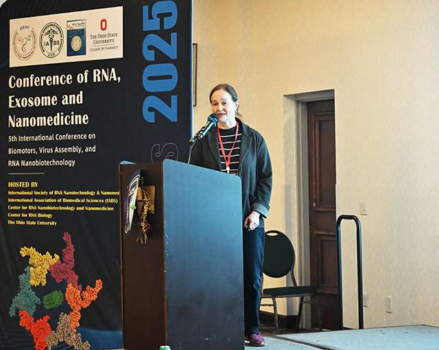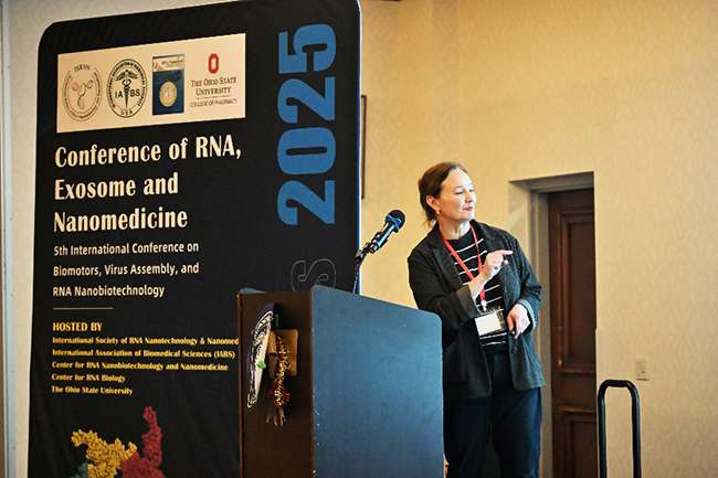 俄亥俄州立大学RNA纳米技术和纳米医学中心的Karin Musier-Forsyth 教授在做报告