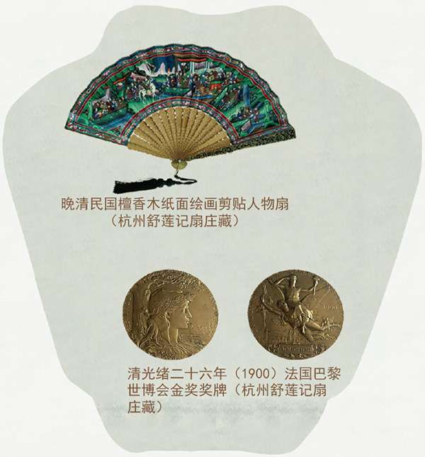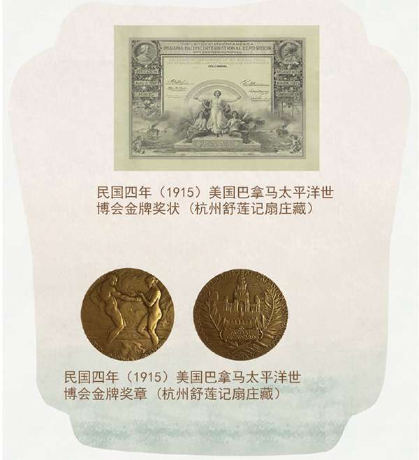 世博荣光,扇动世界 自晚清至民国,舒莲记的扇面在世界舞台上徐徐展开1878年巴黎世博会的鎏金奖牌上,1900年巴黎万国博览会的赞誉声中,1904年圣路易斯世博会的惊叹目光里,1915年巴拿马太平洋博览会的最高荣誉台上...这一把把东方雅扇,不仅承载着清风,更载着中华文明的精粹,让世界为之倾倒。