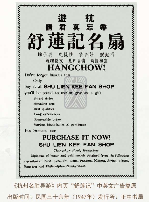 民国浙江省民政厅厅长阮毅成在《三句不离本杭》中写道:"杭州所产扇子,为江南所著名,尤以舒莲记所制者,最为上乘。"那一把可纳入僧袖的大型红油纸扇,那一柄置于西服口袋的精致黑油纸扇,那一把香随风生的檀香扇,都是岁月长河中不可复制的绝响。