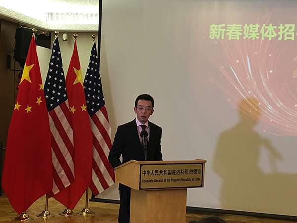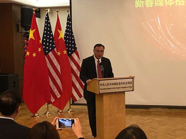 1月17日,中国驻洛杉矶总领事馆举办了2018年华文媒体新春招待会。出席招待会的有中国洛杉矶总领事馆总领事张平,副总领事孙鲁山、副总领事庄志哲、副总领事代双明以及总领馆的政治组组长任志芳、科技参赞吕先志、商务参赞刘海彦、教育参赞张泰青、侨务二组组长周咏梅等人。会议由新闻组组织高飞主持。