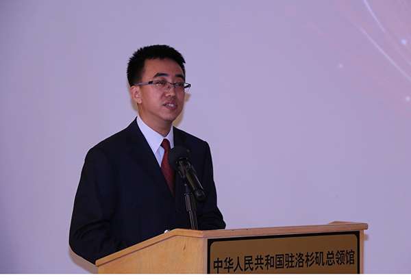 中国洛杉矶总领事馆总领事张平在招待会上致辞。