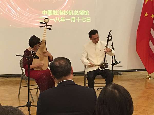中国驻洛杉矶总领事馆举办了2018年华文媒体新春招待会现场。