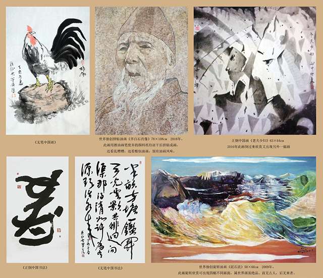 他是世界画坛里的发明家,发明家里的画家。他是从这个艺术村中脱颖而出一位怪才画家,他怀揣着旋转绘画、拼贴油画、正倒中国画、正倒书法、无笔书法、无笔中国画等六大绘画发明,正向世界画坛的艺术巅峰攀登,他就是怪才画家蒋征先生。