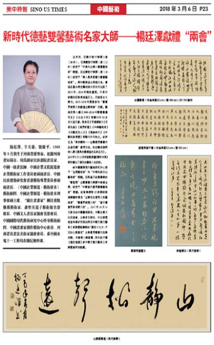 近年来,在国内发行邮票3套(30枚),在美国发行邮票1套(12枚)被授予“中美杰出华人书画艺术家”称号,在法国发行邮票1套(10枚)被授予“华人最具影响力书画艺术家”。与中国美协主席刘大为、书协名誉主席沈鹏老师分别合作出版了2015年、2016年精品台历。代表作被镌刻在新长城基石上,向游客永久展示。2015-2018年应邀参加“书画界新闻人物献礼全国两会”活动。艺术成果入编《1949-2014中国书画编年史》《古往今来》等国内外30多本大型文献,发表在《市场观察》《求是先锋》《商界财富》《中华艺术家》《中国成功人士》《商旅时代》《中国民族博览》等国内外刊物上。被评定为“传承国粹——全国优秀书画作品进校园”优秀作品,和沈鹏老师同时入选《最具收藏价值的名家名作》。2015年5月12日河南电视台《睛彩中原》节目播出了杨先生艺术人生访谈。