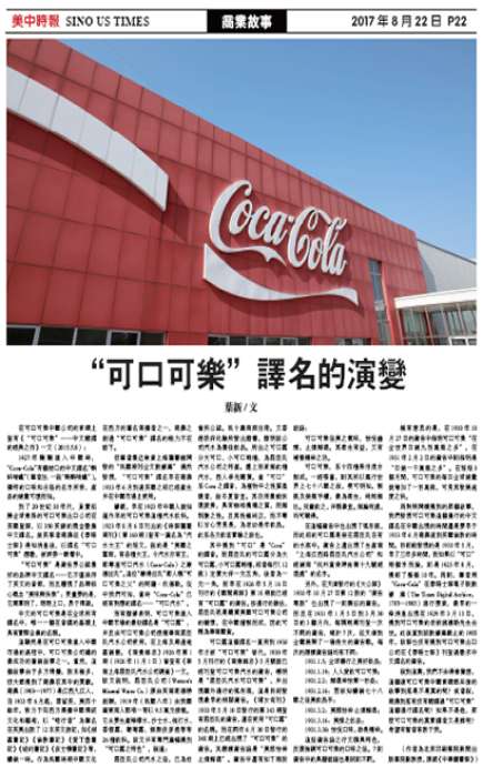 在可口可乐中国公司的官网上登有《“可口可乐”——中文翻译的经典之作》一文(2015.5.8):