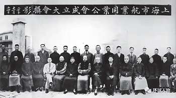 航业同业公会成立合影,后排左7 为陈顺通先生。