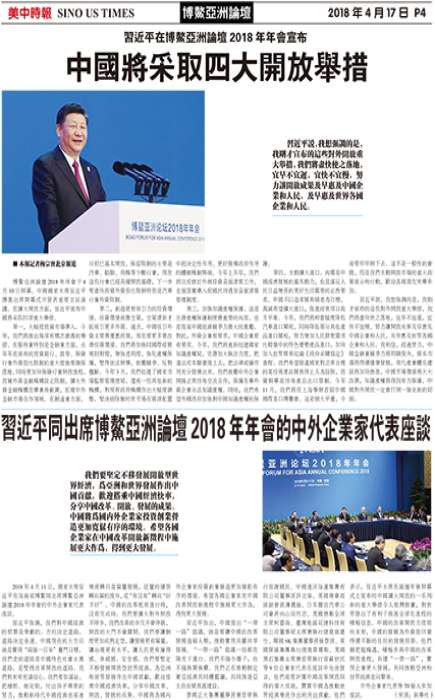 2018年4月11日,国家主席习近平在海南省博鳌同出席博鳌亚洲论坛2018年年会的中外企业家代表座谈。