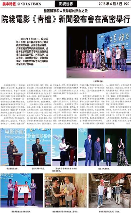 2018年5月23日,院线电影《青檀》在中国高密举行了隆重的新闻发布会。高密市委宣传部、高密电视台等单位的相关领导,香港著名影星汤镇业等明星演员以及来自北京电影学院、河南大学、青岛大学、山东艺术学院、青岛滨海学院、青岛恒星学院等高校的影视专家出席了发布会。
