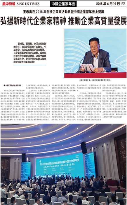 王忠禹最后指出,党的十九大确立了习近平新时代中国特色社会主义思想,对决胜全面建成小康社会作出战略部署。新时代、新征程,企业家肩负新的责任。广大企业家要不忘初心、牢记使命,大力弘扬优秀企业家精神,以企业创新发展的更大成绩,为实现经济社会持续健康发展、决胜全面建成小康社会、实现中华民族伟大复兴的中国梦作出新的贡献!