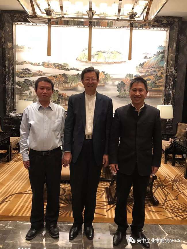 宁波市海曙区人民政府区长禇孟形会见美中企业家商会代表团团长孙文铁会长。