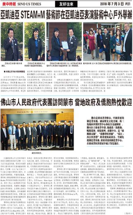 6月23日下午5点至9点,由亚凯迪亚表演艺术中心联合音响品牌Beats、漫威动画(Marvel)和亚凯迪亚市政府共同推出的亚凯迪亚STEAM+M艺术节在亚凯迪亚表演艺术中心户外成功举办。有亚凯迪亚华人协会等诸多非营利机构和艺术团体及公司参展摊位,吸引力来自亚凯迪亚及其附近城市的小朋友和家长们参与。亚凯迪亚新任市长戴守真在亚凯迪亚STEAM+M艺术节上讲话,戴守真市长表示,亚凯迪亚表演艺术中心发起的这个新的形势很好,不但把科学与艺术结合起来,还把音乐也融合在一起,大家都很喜欢,希望大家都参与。