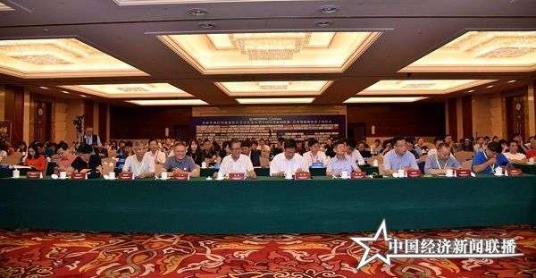 中国记协书记处书记潘岗与中国经济传媒协会会长赵健在论坛上亲切交流