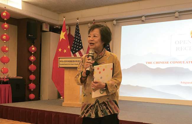 圣地亚哥州立大学孔子学院美方院长刘丽容讲话。