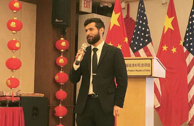 美籍北京清华大学学生Eddie Carrillo 发表感言。