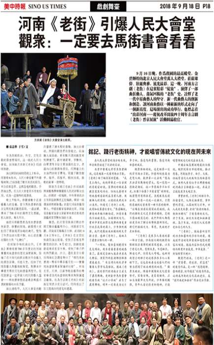 据悉,此次晋京展演活动由中国文联曲艺艺术中心、河南省文化厅、河南省文联联合主办。此前的9月8日至9日,《老街》在北京民族剧院演出两场,受到了首都各界观众的好评。9月12日,该剧走进最高学府北京大学,受到了学子们的热烈欢迎。次日,还在北京大学百周年纪念讲堂举行了“寻找马街书魂·传承中华曲艺文化——宝丰马街书会传承保护研讨会”,来自北京、天津、江苏等地曲艺界的专家学者为马街书会的传承与保护建言献策,也为方言剧《老街》的创新呈现表示充分认可,同时提出了加工提高好的意见和建议。