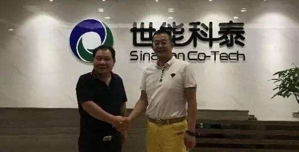 前海蔚蓝董事长陈光平(左)与世能科泰董事长总裁沈忠东(右)交流后合影