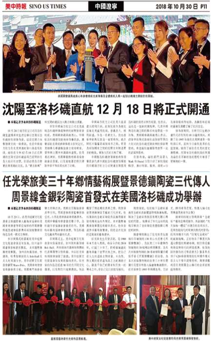 10月23日,由美中经贸文化促进会主办国际华人艺术家协会和美国奉商总会等单位协办的西蜀胜览乡风悠远和瓷都传承两个展览会同时在洛城一号成功举办。